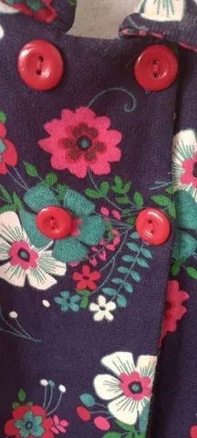 Casaco sobretudo pelúcia do azul marinho com flores brancas, vermelhas e verdes. Estampa linda. Tamanho 4. Tem os passadores para o cinto, mas não vem com o cinto/faixa.